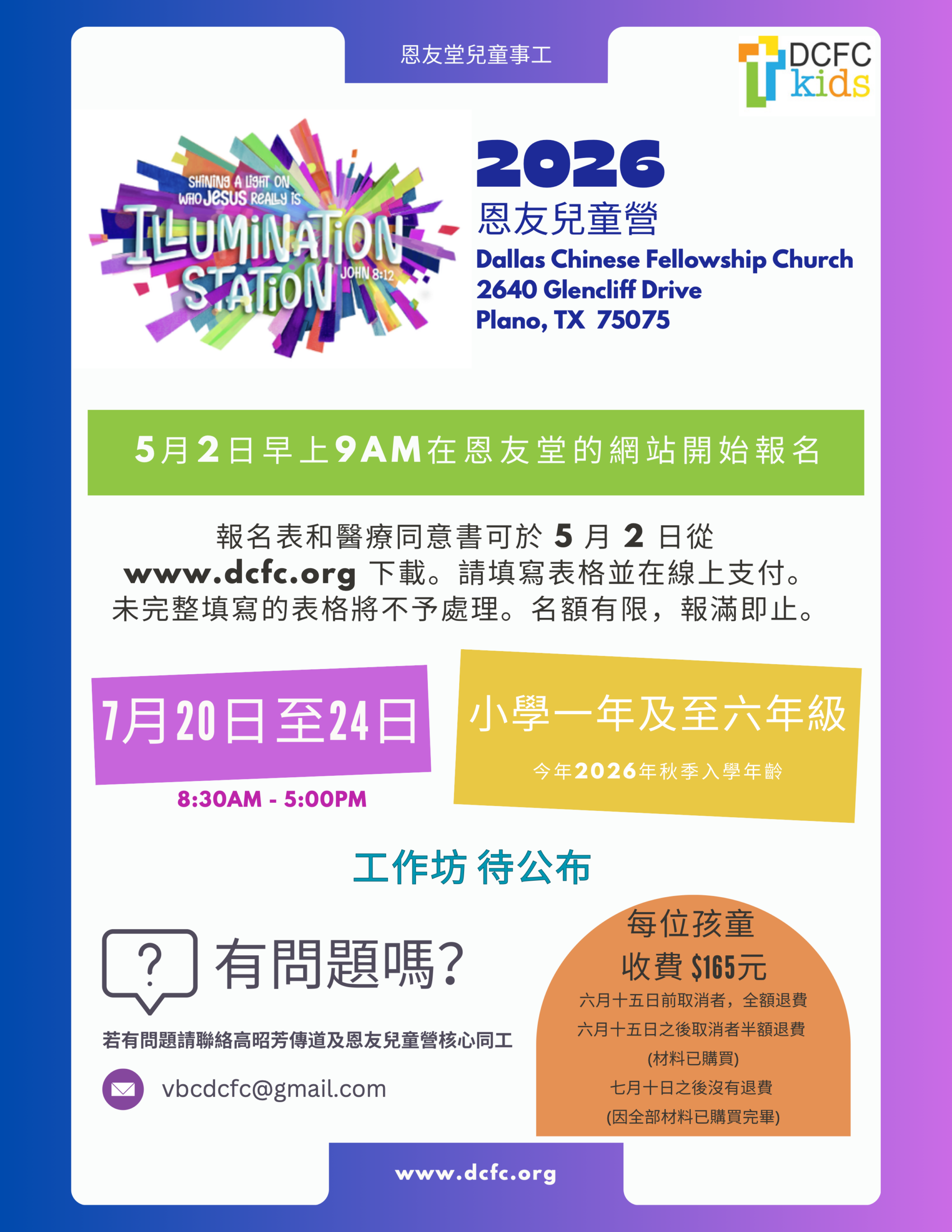我们感谢上帝赐予我们教会,让我们拥有热爱儿童并希望看到他们在知识和对耶稣基督的救赎信仰上成长的老师和领导者。如果您对我们的儿童事工有任何疑问,请联系儿童事工传道高昭芳。谢谢。